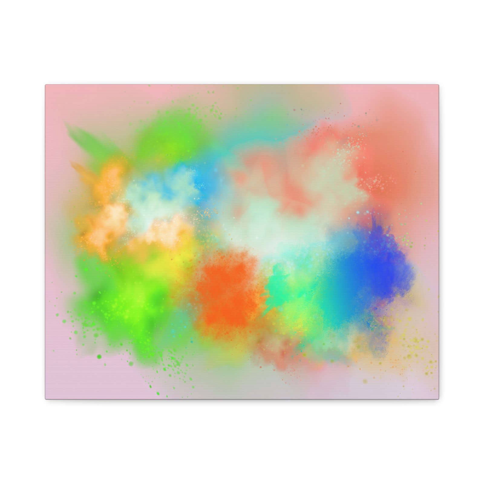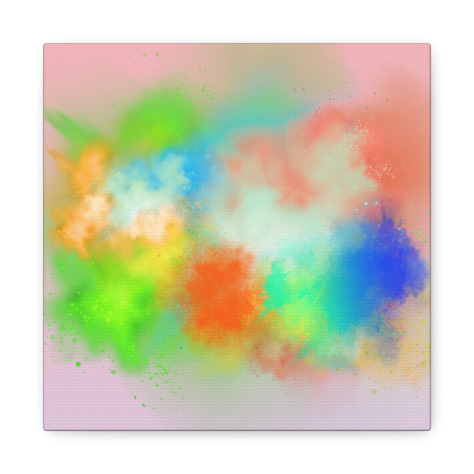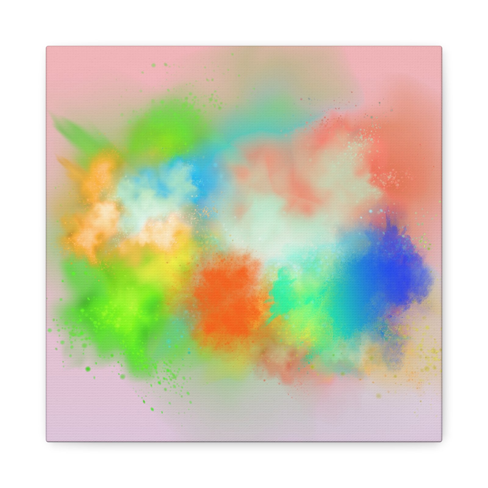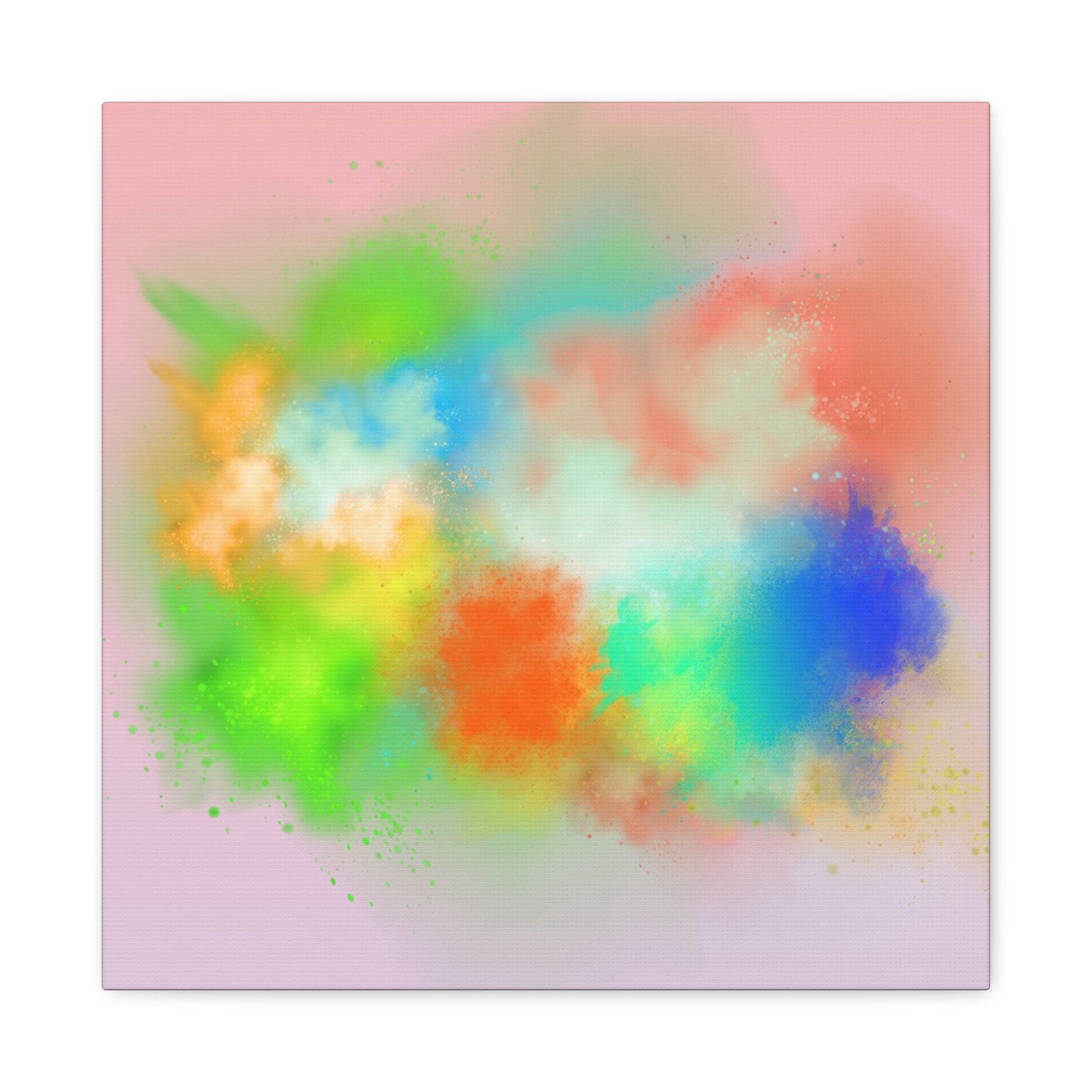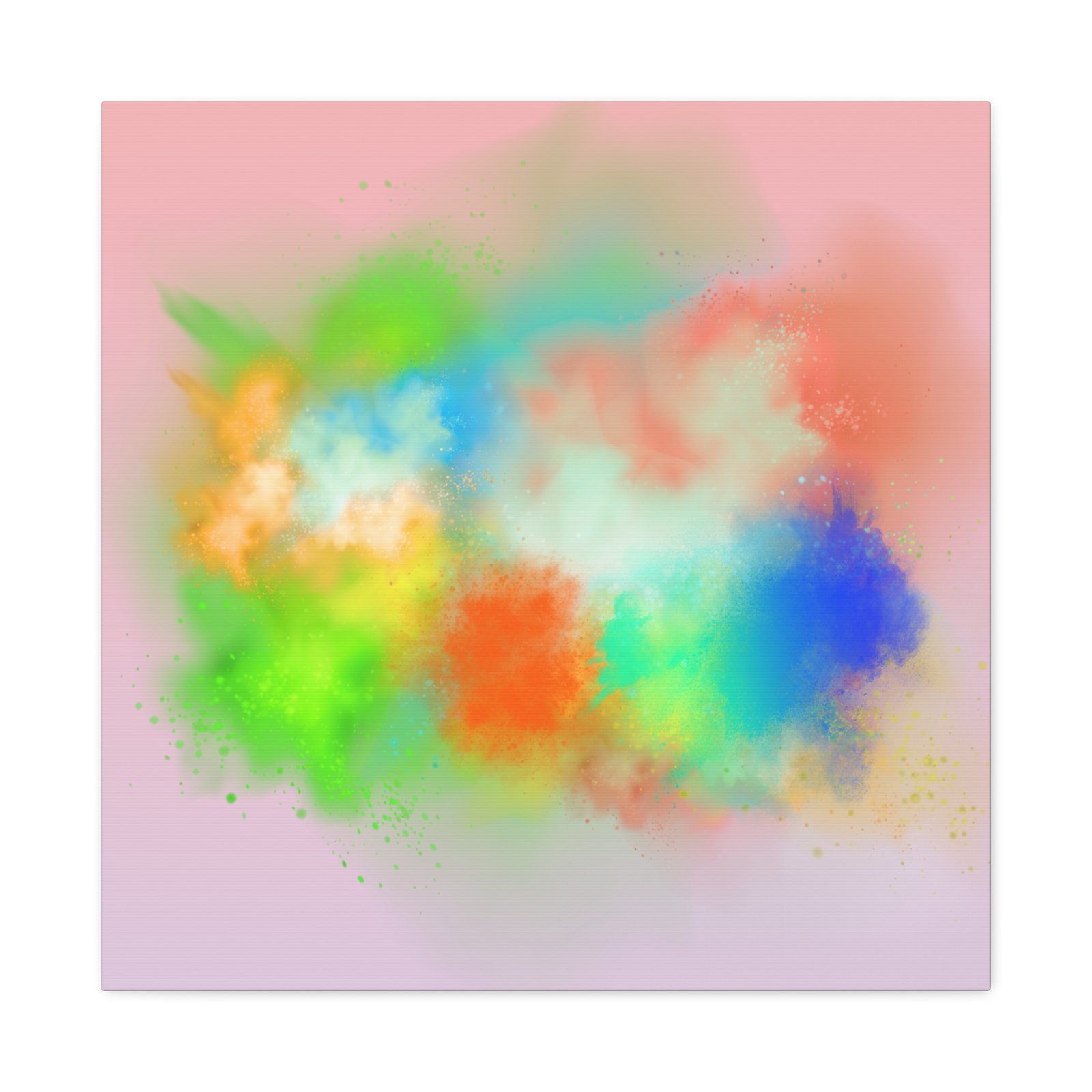 A vibrant stretched canvas that brings an airy splash of color into calm, modern spaces. Soft pink undertones cradle bursts of emerald, cobalt, coral and sunshine—like a painterly breath captured mid-motion. Lightweight yet sturdy, the matte finish mutes glare and highlights texture so the colors feel layered and alive on the wall. Hang it above a reading nook, over a minimalist mantel, or in a creative workspace to invite warmth and playful energy without overwhelming the room. The subtle depth from the wrapped edges and the secure back-hanging hardware keep it looking polished and effortless.