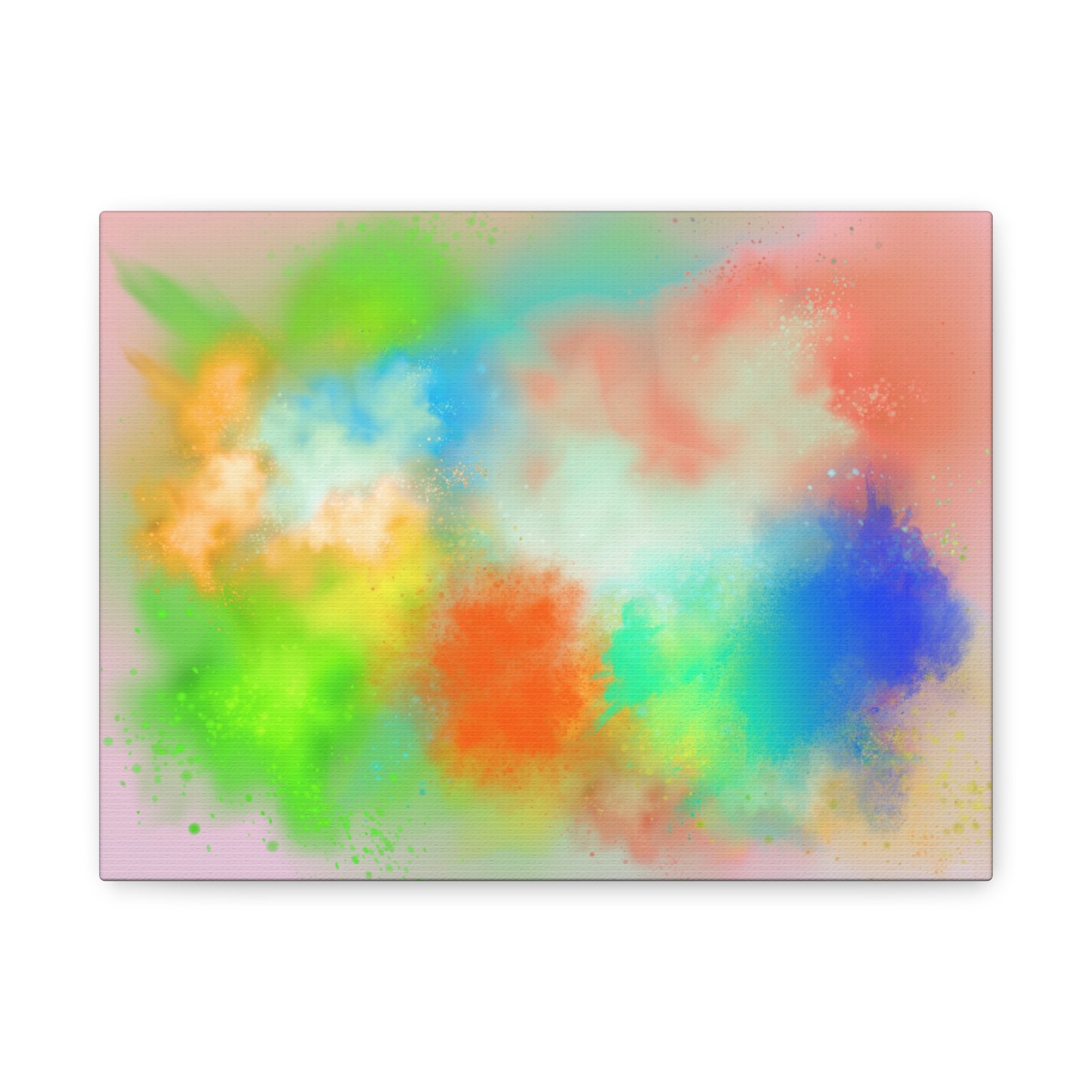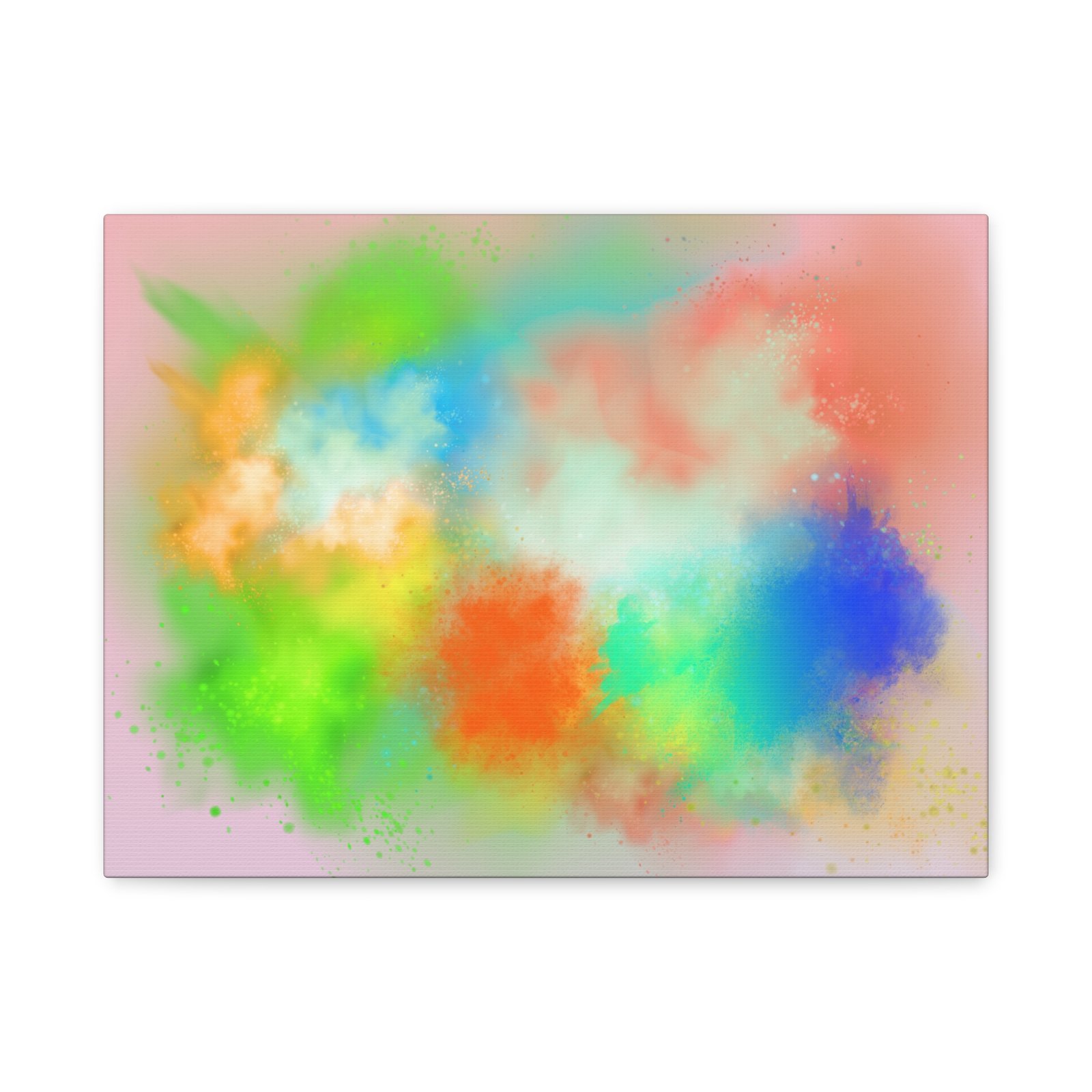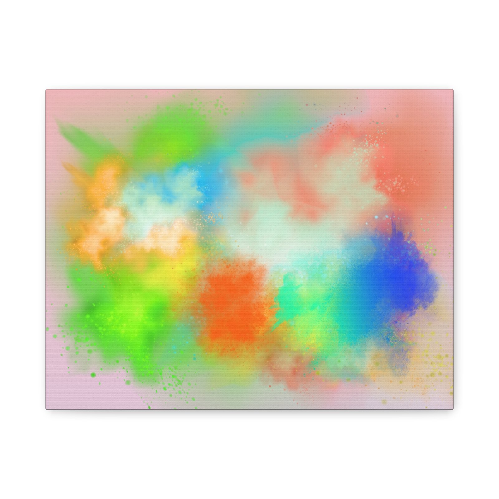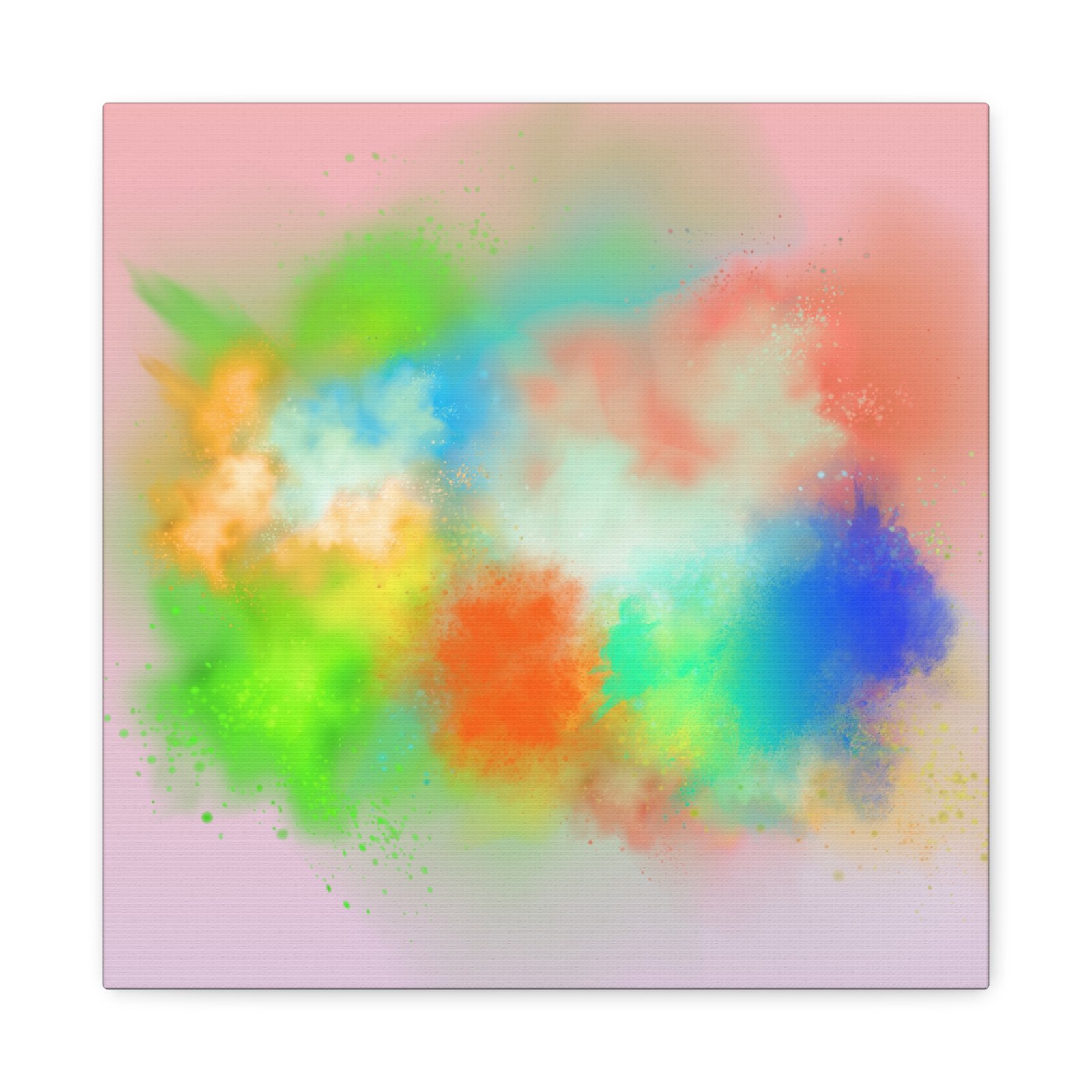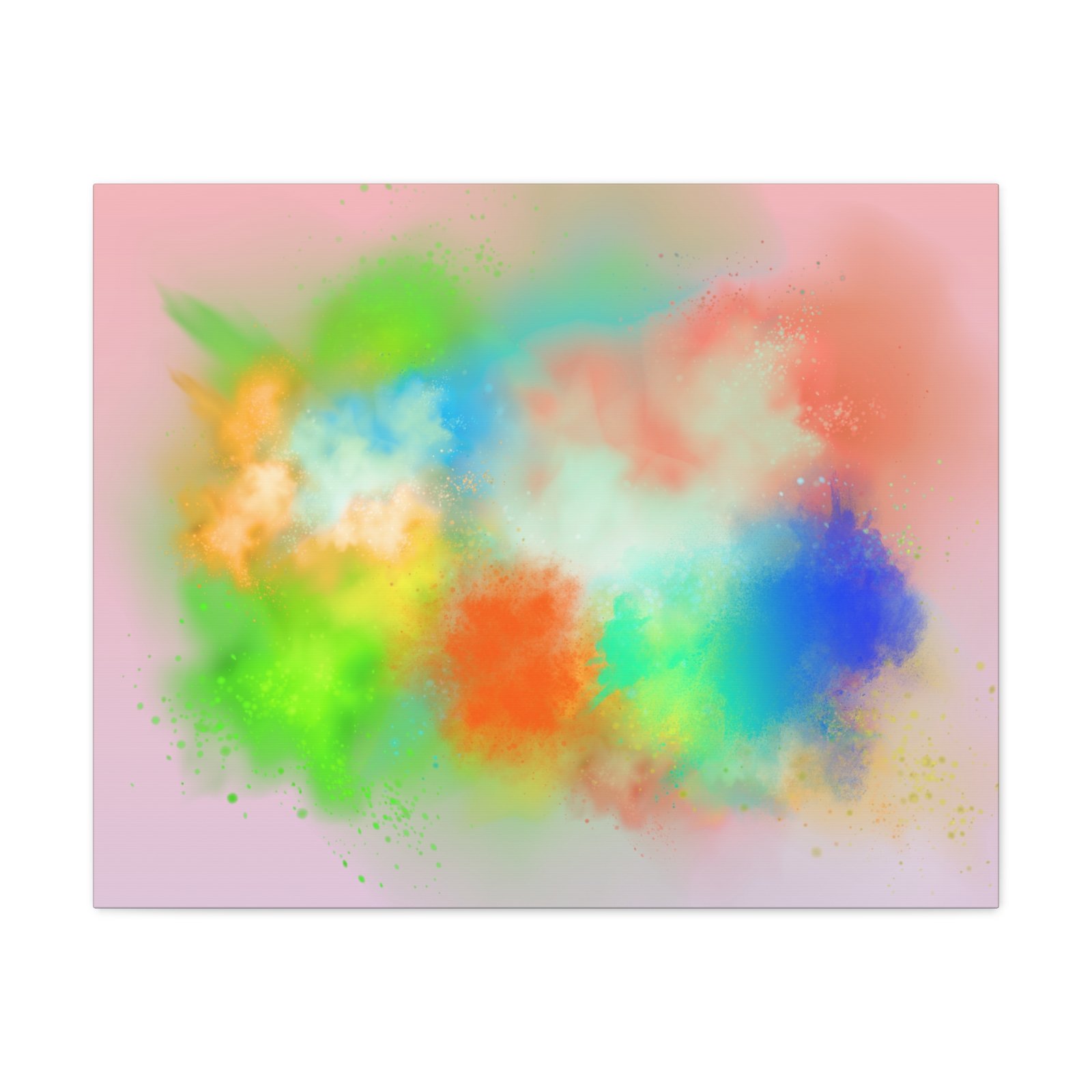 A vibrant stretched canvas that brings an airy splash of color into calm, modern spaces. Soft pink undertones cradle bursts of emerald, cobalt, coral and sunshine—like a painterly breath captured mid-motion. Lightweight yet sturdy, the matte finish mutes glare and highlights texture so the colors feel layered and alive on the wall. Hang it above a reading nook, over a minimalist mantel, or in a creative workspace to invite warmth and playful energy without overwhelming the room. The subtle depth from the wrapped edges and the secure back-hanging hardware keep it looking polished and effortless.