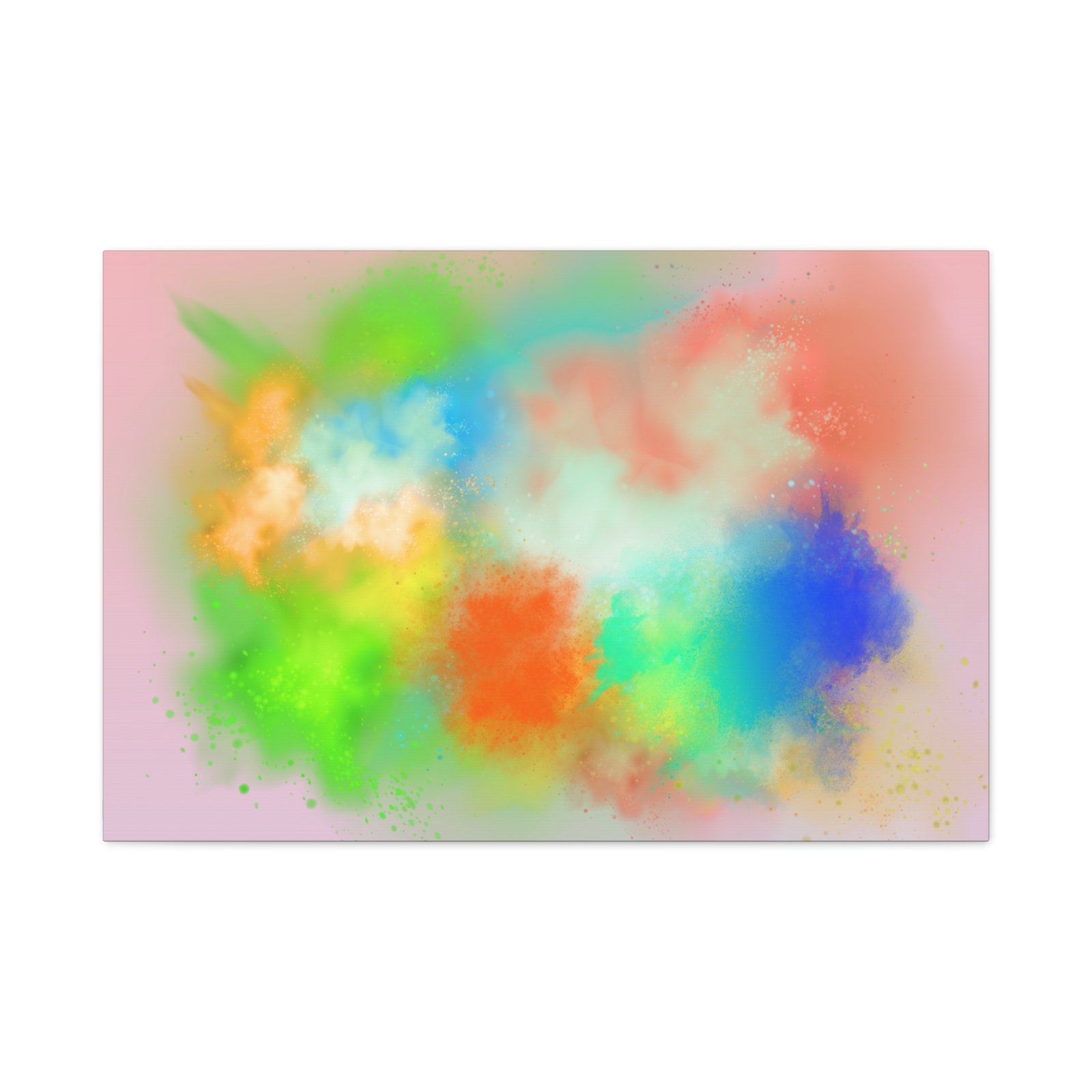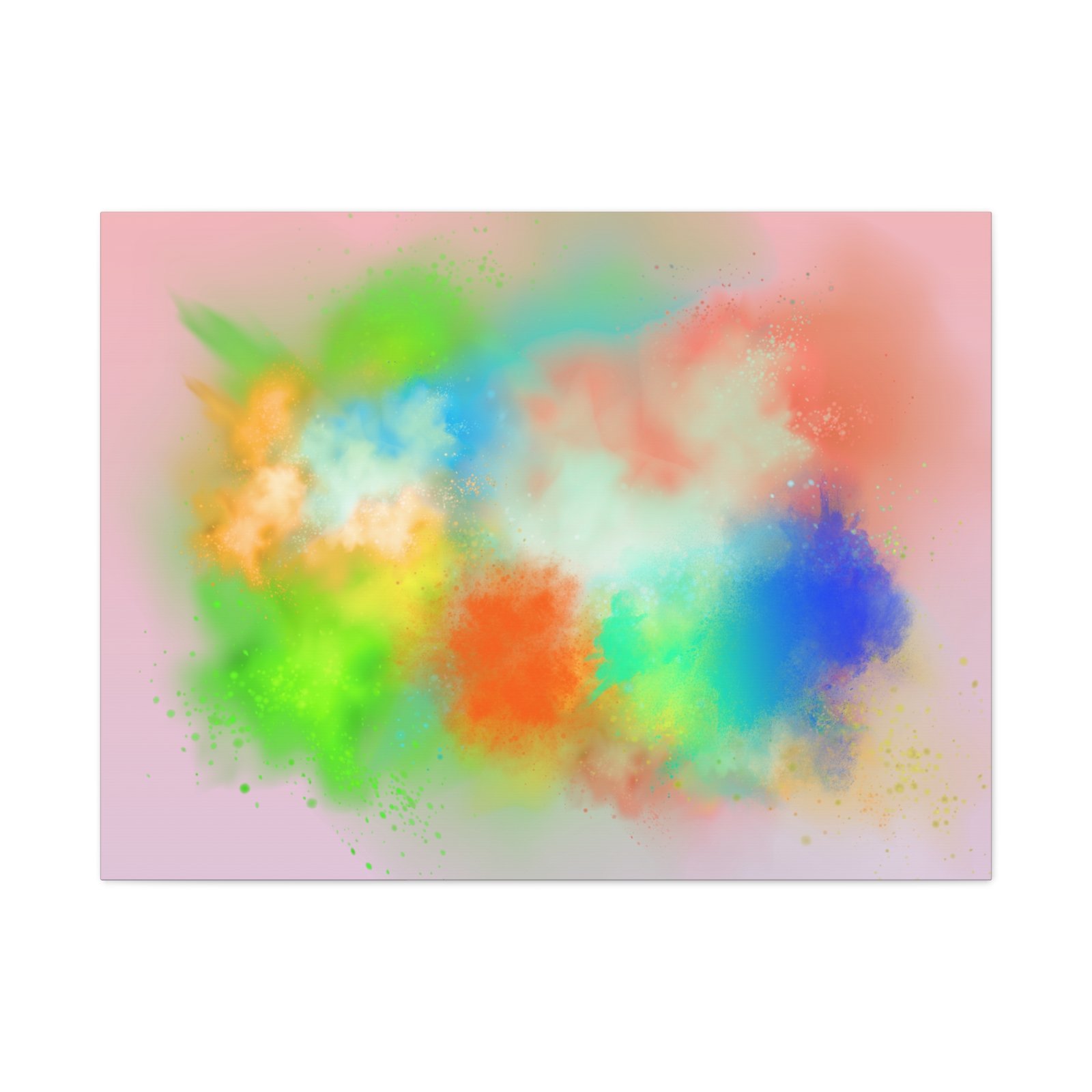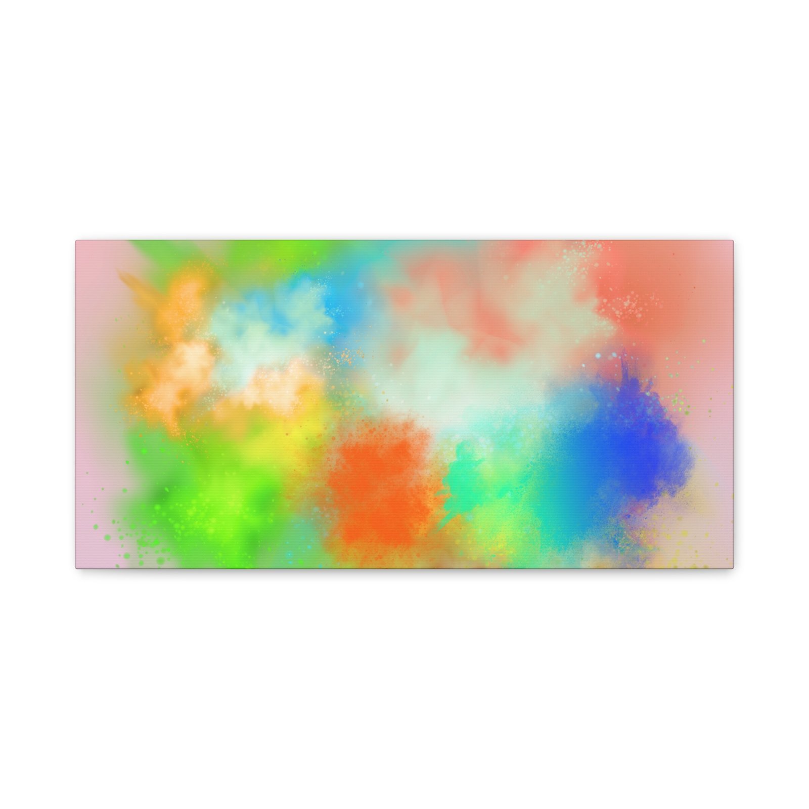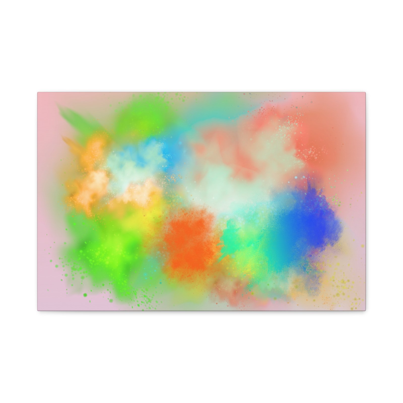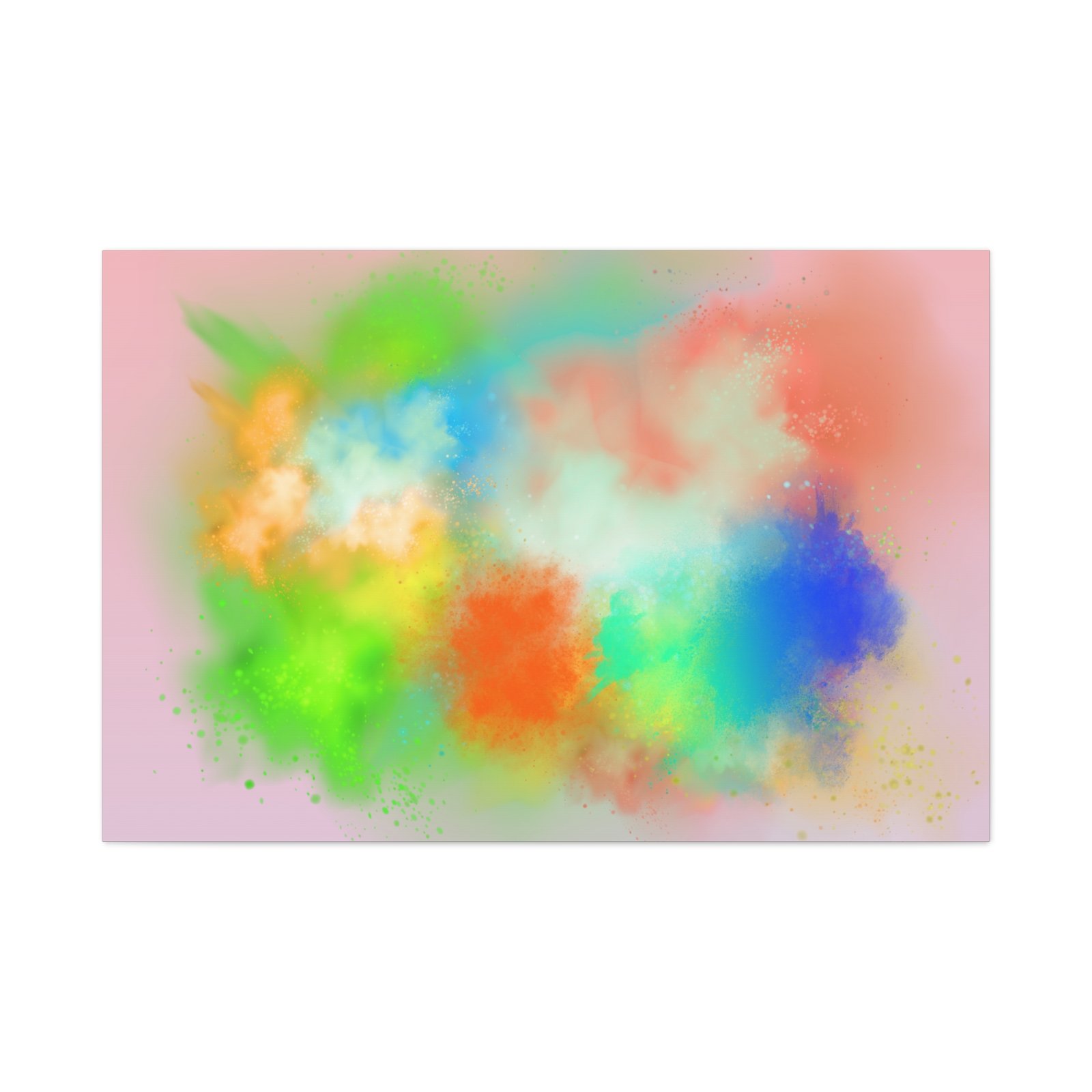 A vibrant stretched canvas that brings an airy splash of color into calm, modern spaces. Soft pink undertones cradle bursts of emerald, cobalt, coral and sunshine—like a painterly breath captured mid-motion. Lightweight yet sturdy, the matte finish mutes glare and highlights texture so the colors feel layered and alive on the wall. Hang it above a reading nook, over a minimalist mantel, or in a creative workspace to invite warmth and playful energy without overwhelming the room. The subtle depth from the wrapped edges and the secure back-hanging hardware keep it looking polished and effortless.