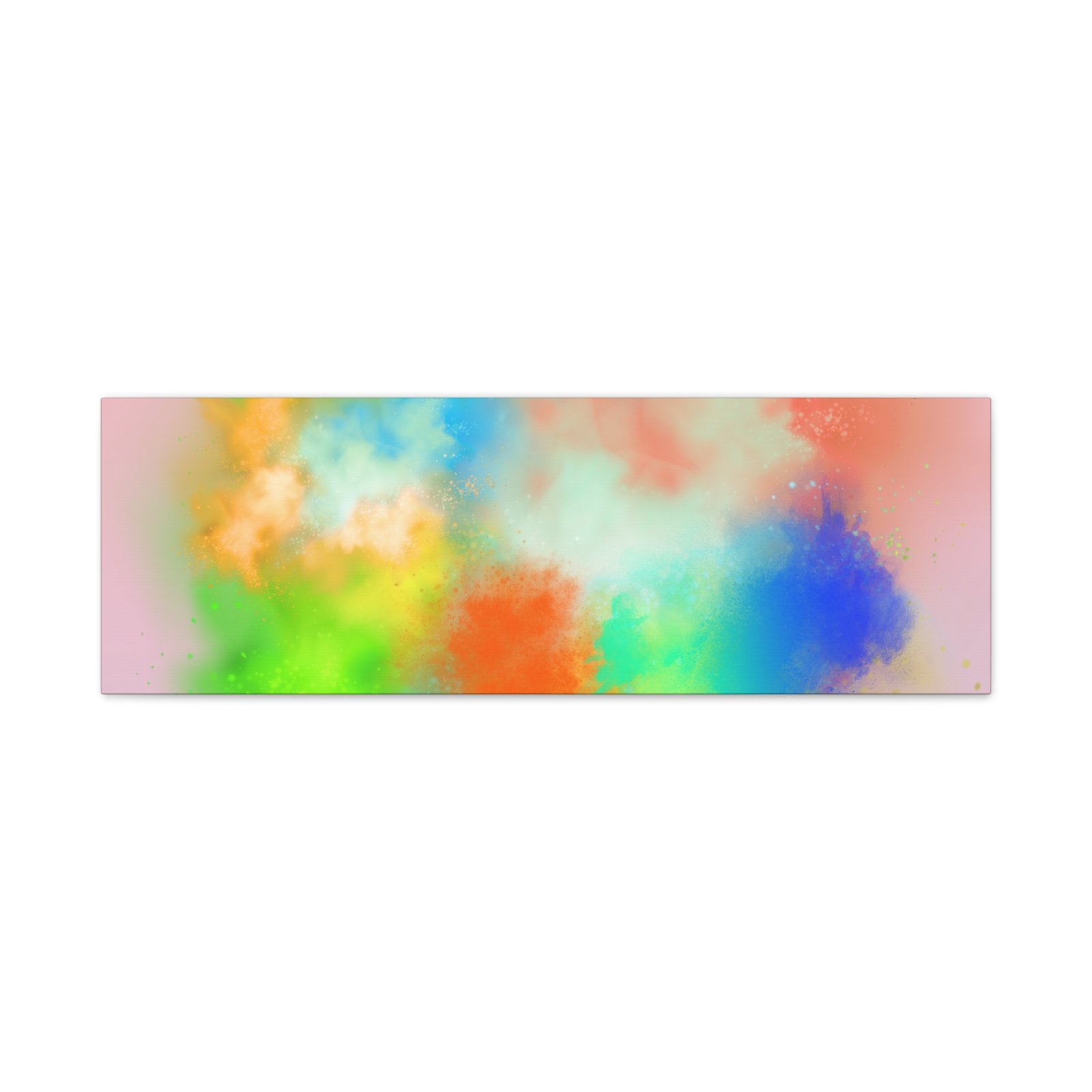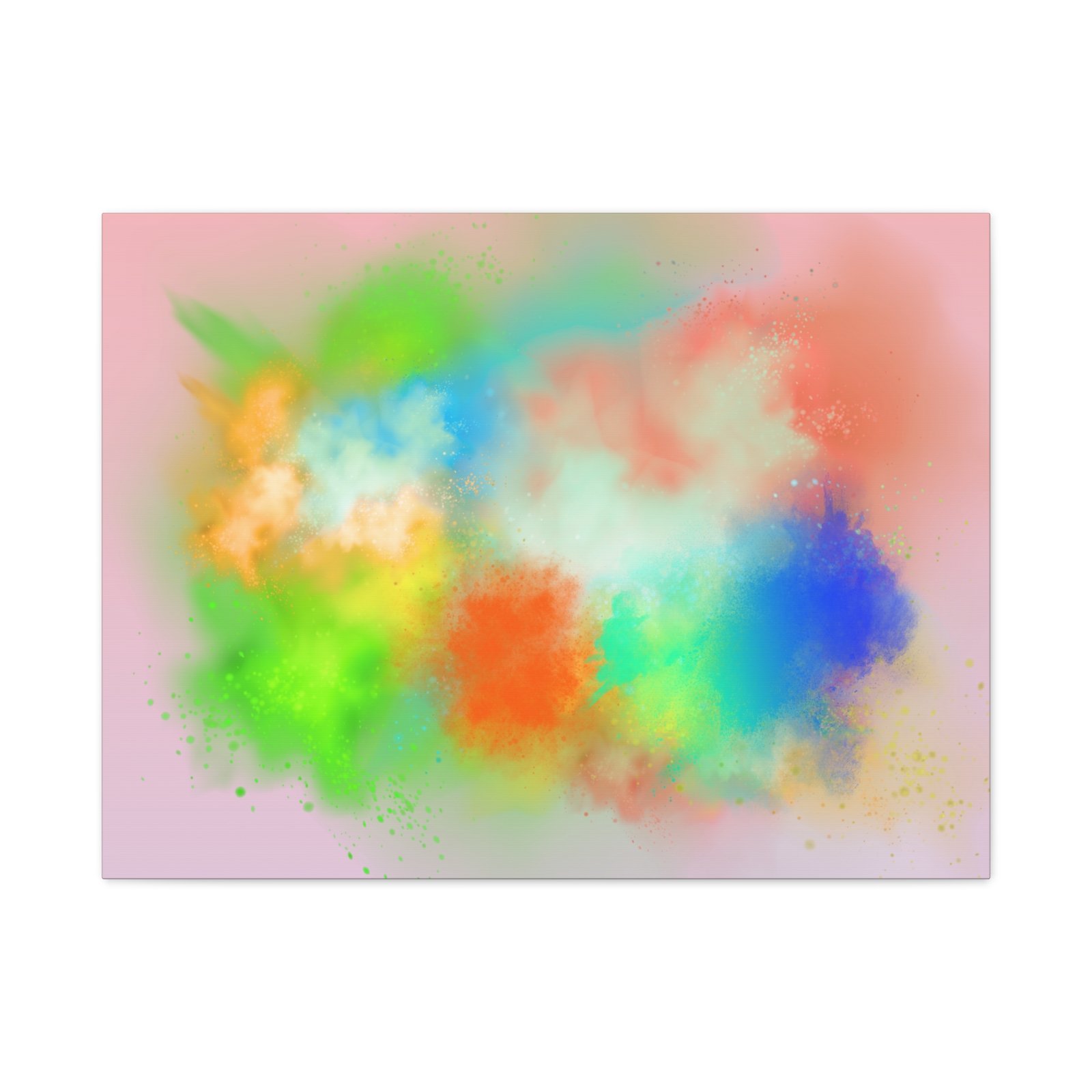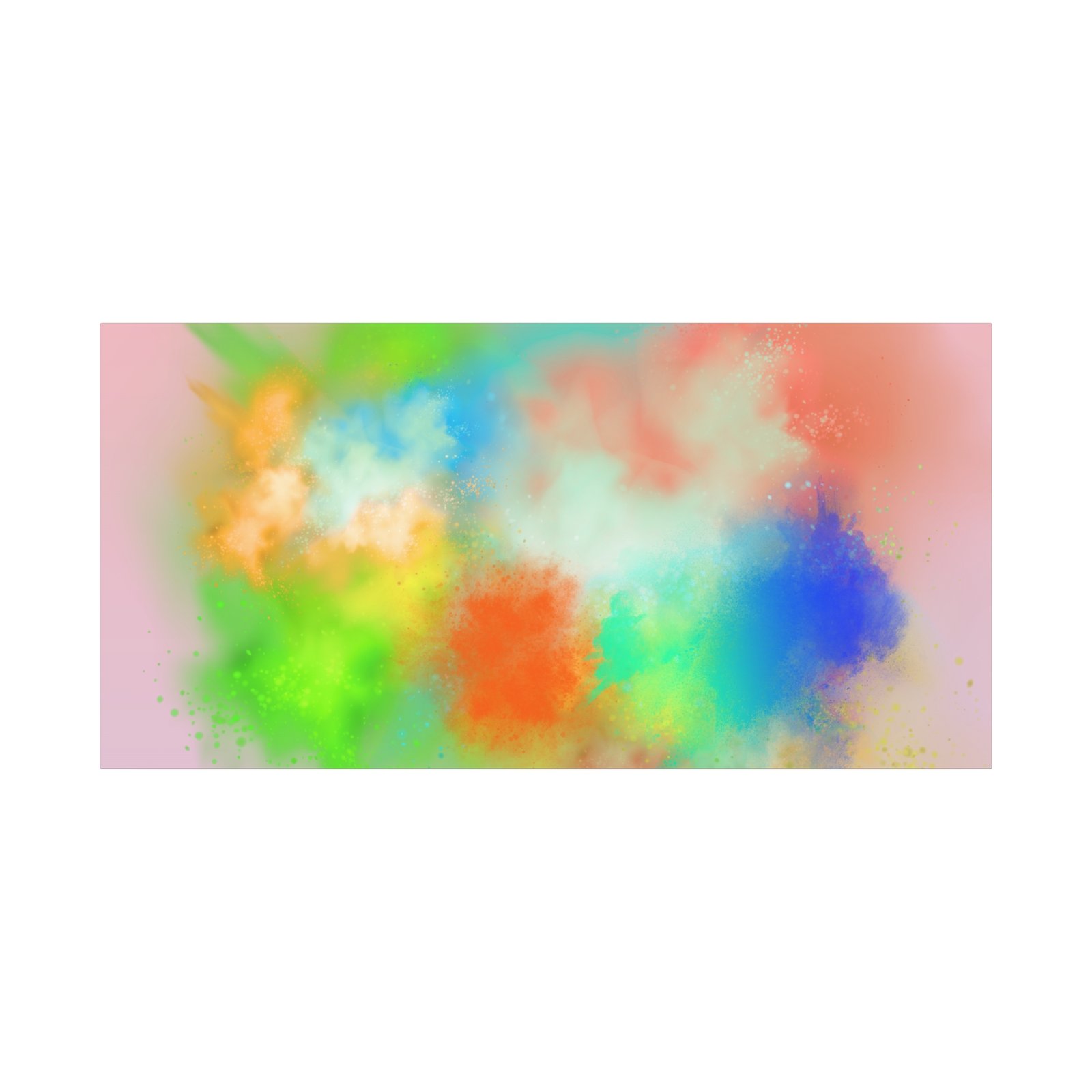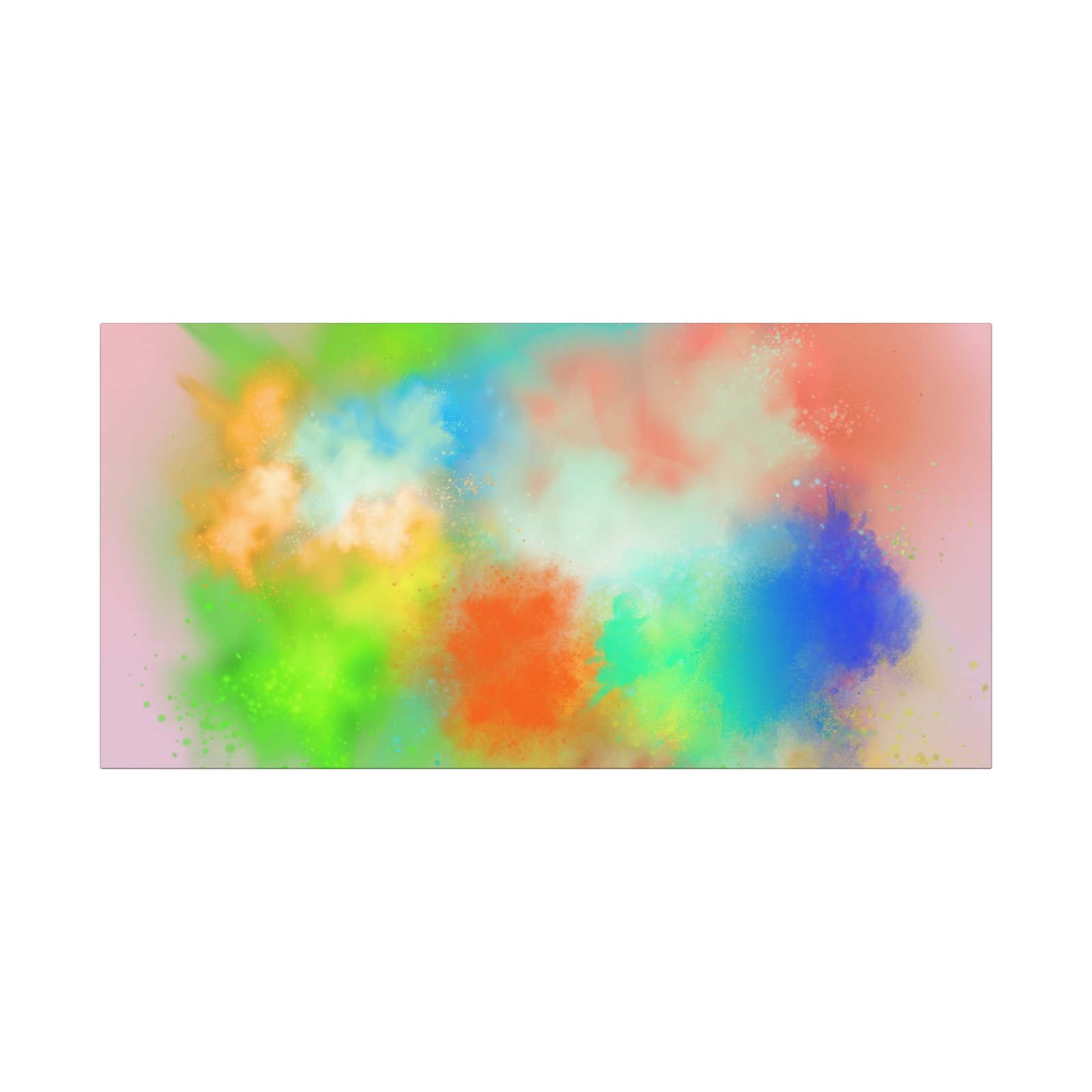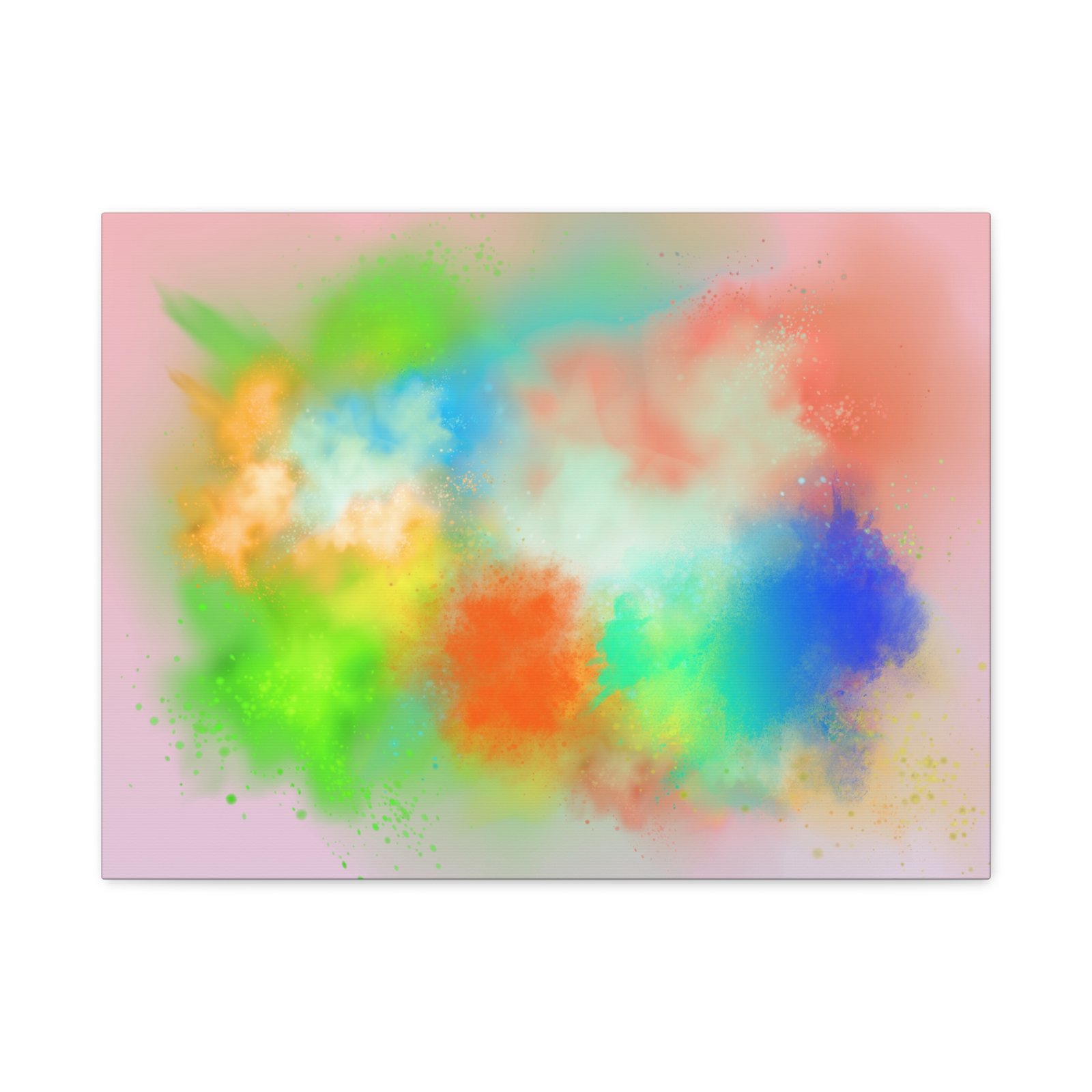A vibrant stretched canvas that brings an airy splash of color into calm, modern spaces. Soft pink undertones cradle bursts of emerald, cobalt, coral and sunshine—like a painterly breath captured mid-motion. Lightweight yet sturdy, the matte finish mutes glare and highlights texture so the colors feel layered and alive on the wall. Hang it above a reading nook, over a minimalist mantel, or in a creative workspace to invite warmth and playful energy without overwhelming the room. The subtle depth from the wrapped edges and the secure back-hanging hardware keep it looking polished and effortless.