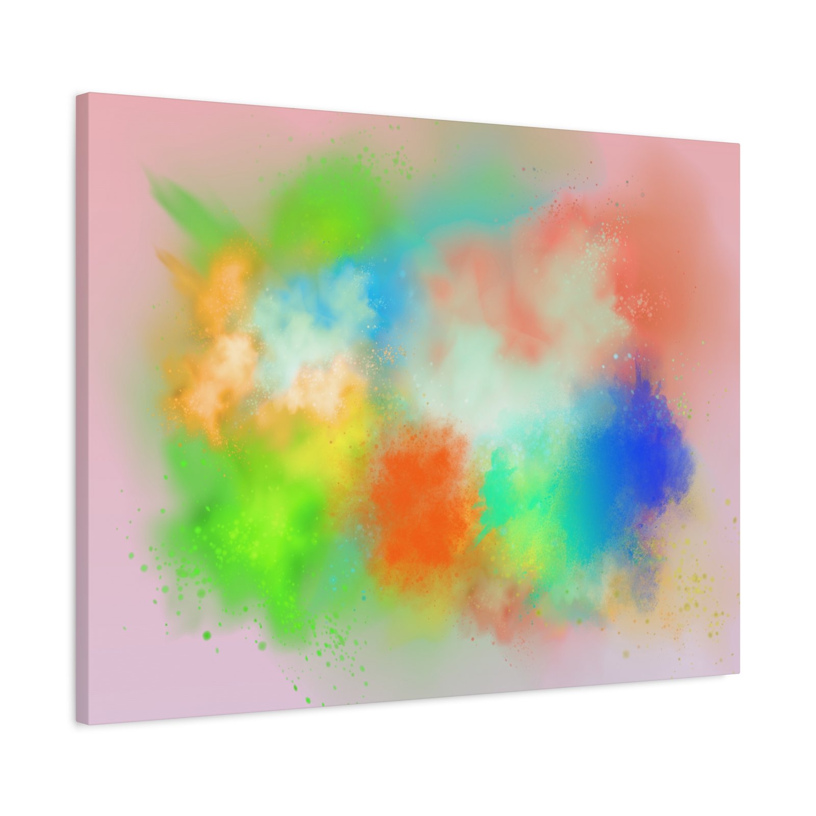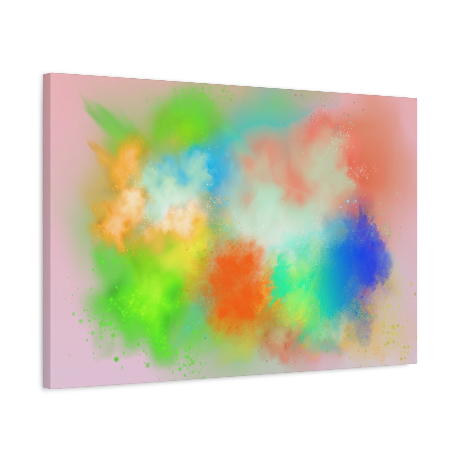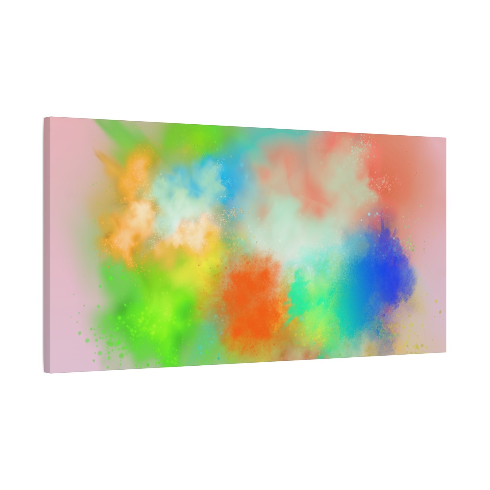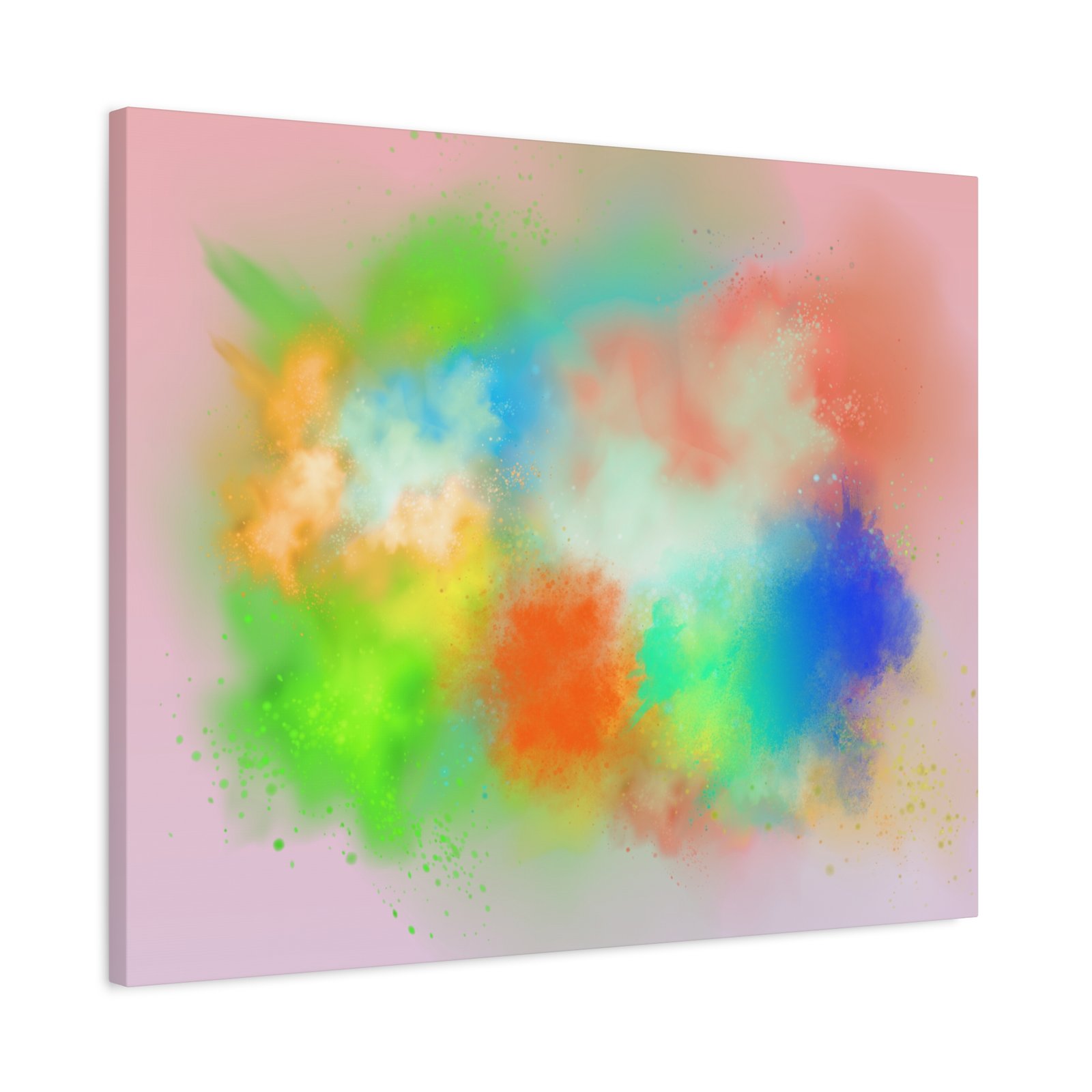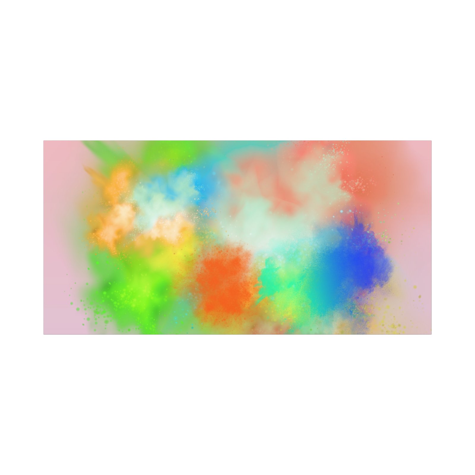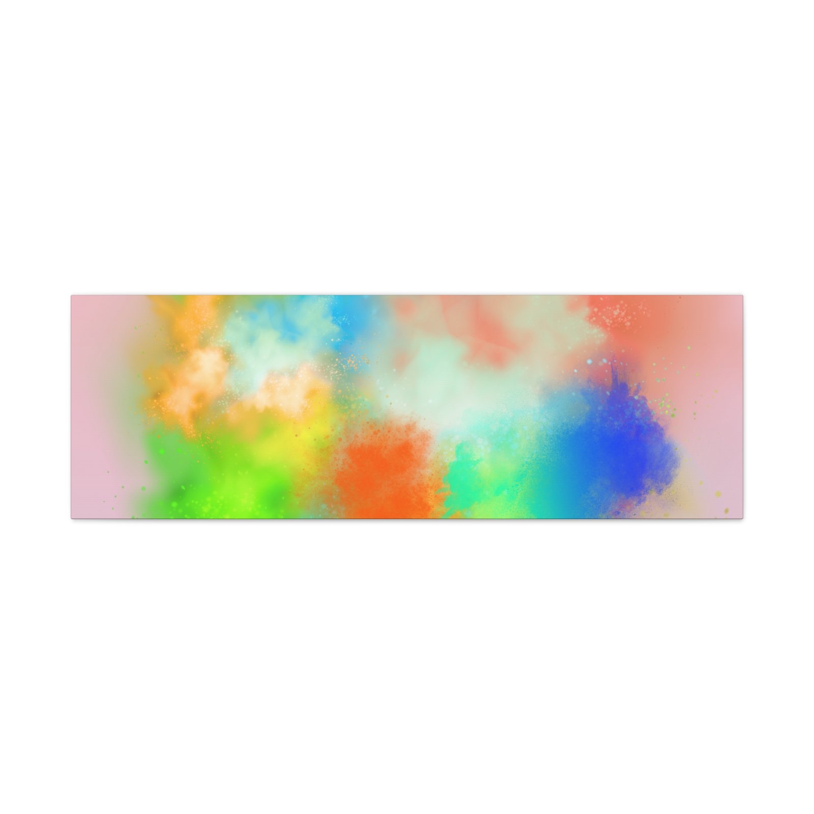 A vibrant stretched canvas that brings an airy splash of color into calm, modern spaces. Soft pink undertones cradle bursts of emerald, cobalt, coral and sunshine—like a painterly breath captured mid-motion. Lightweight yet sturdy, the matte finish mutes glare and highlights texture so the colors feel layered and alive on the wall. Hang it above a reading nook, over a minimalist mantel, or in a creative workspace to invite warmth and playful energy without overwhelming the room. The subtle depth from the wrapped edges and the secure back-hanging hardware keep it looking polished and effortless.