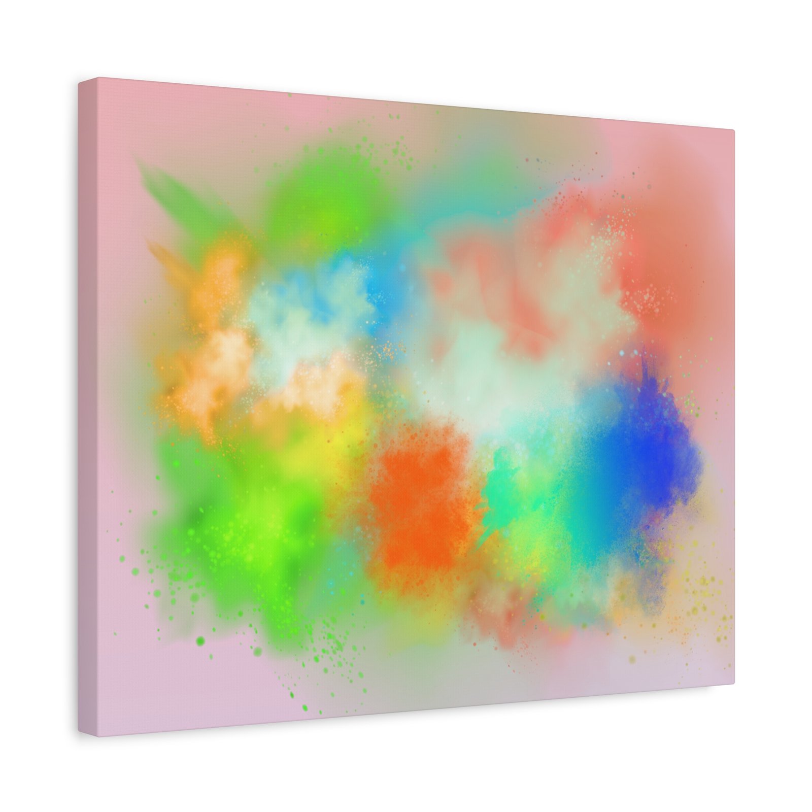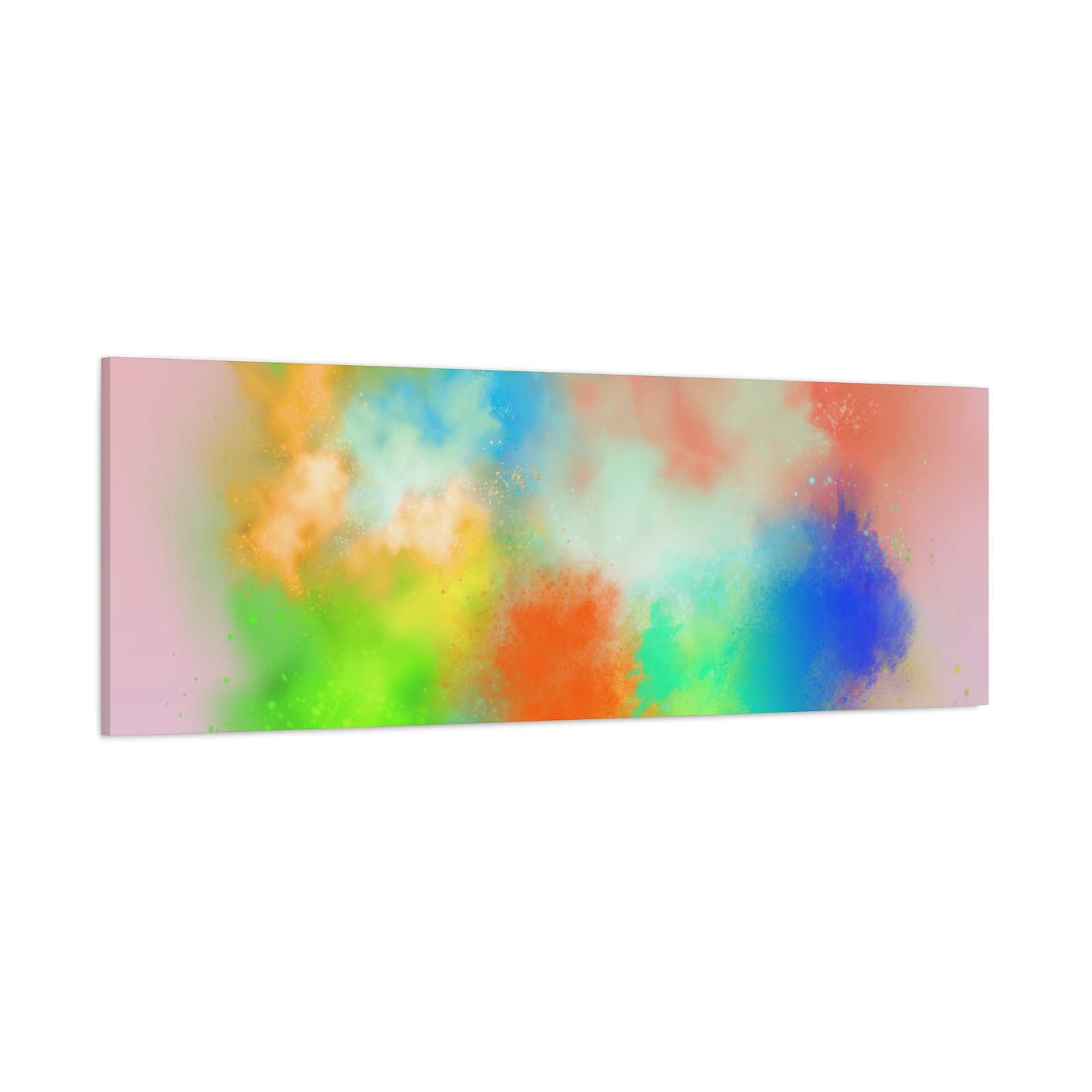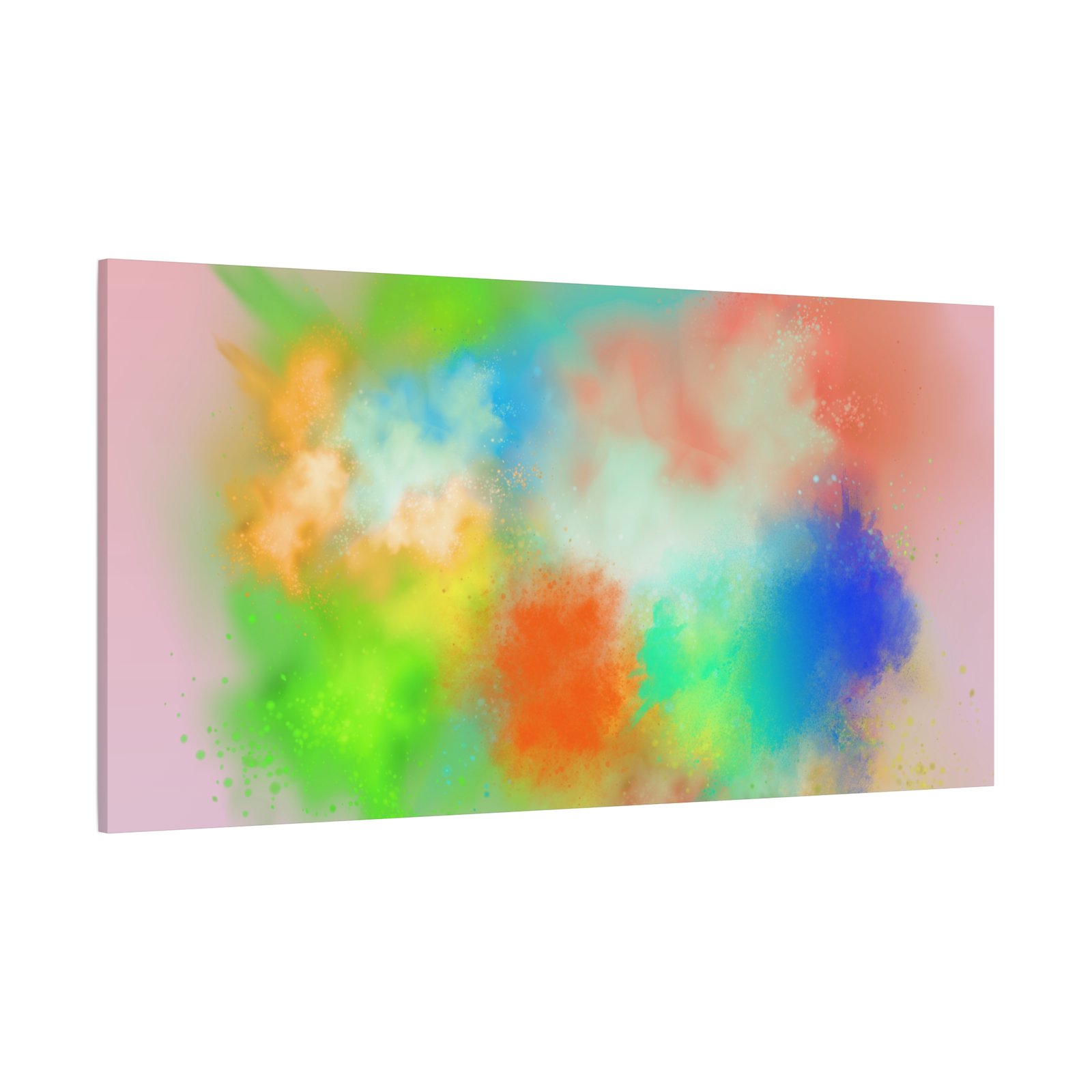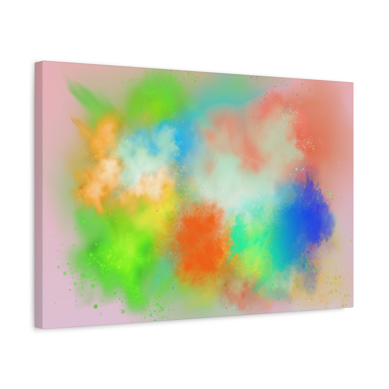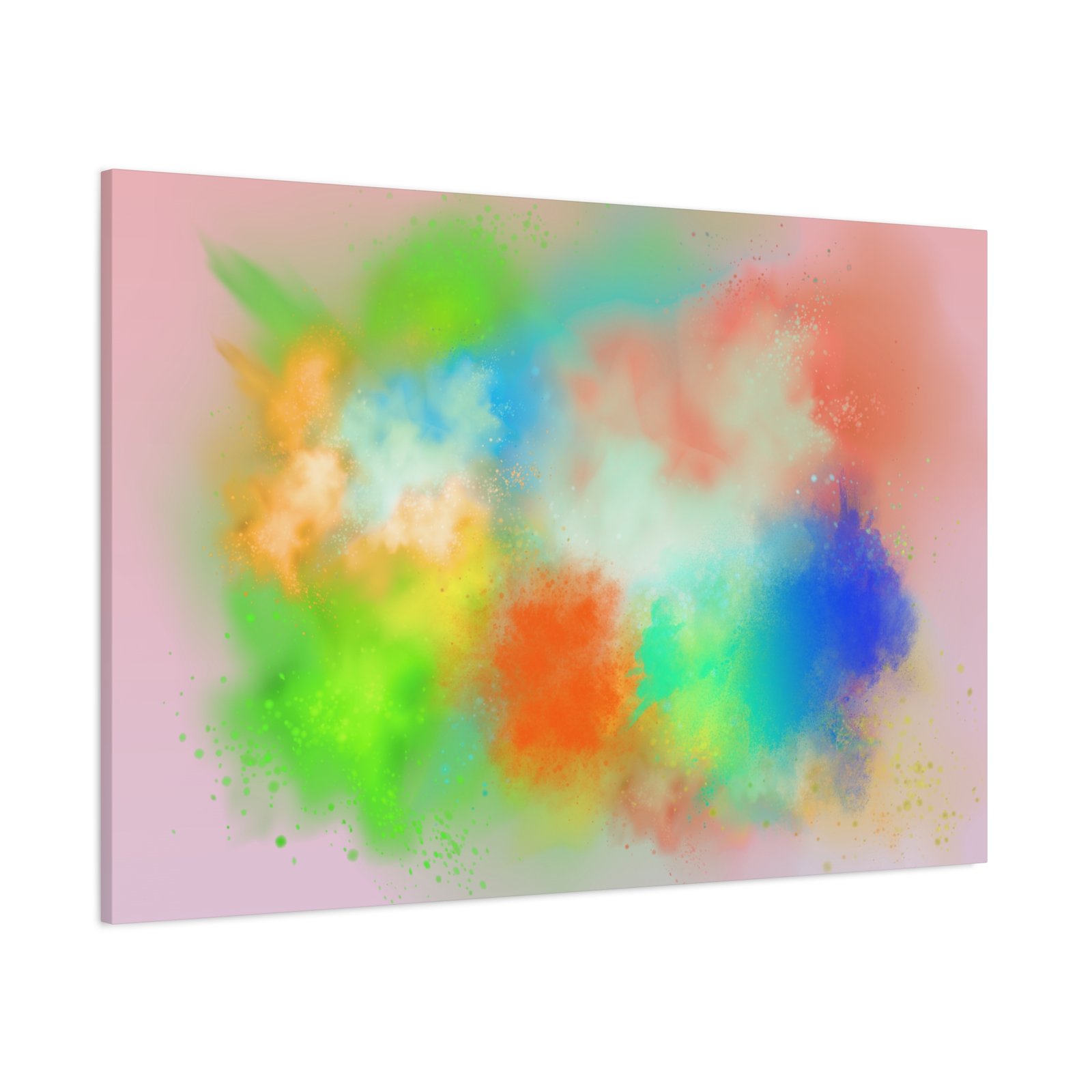 A vibrant stretched canvas that brings an airy splash of color into calm, modern spaces. Soft pink undertones cradle bursts of emerald, cobalt, coral and sunshine—like a painterly breath captured mid-motion. Lightweight yet sturdy, the matte finish mutes glare and highlights texture so the colors feel layered and alive on the wall. Hang it above a reading nook, over a minimalist mantel, or in a creative workspace to invite warmth and playful energy without overwhelming the room. The subtle depth from the wrapped edges and the secure back-hanging hardware keep it looking polished and effortless.