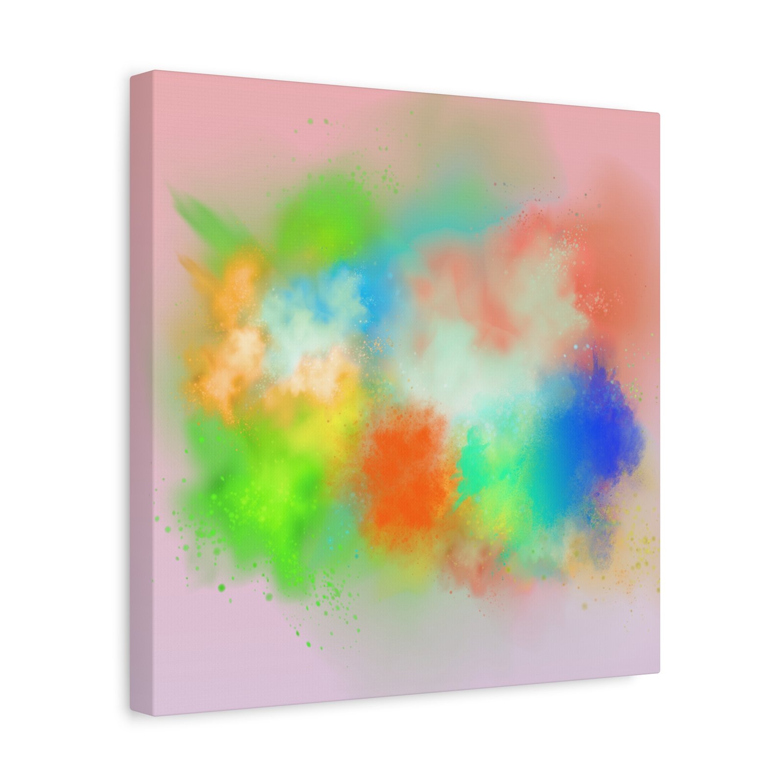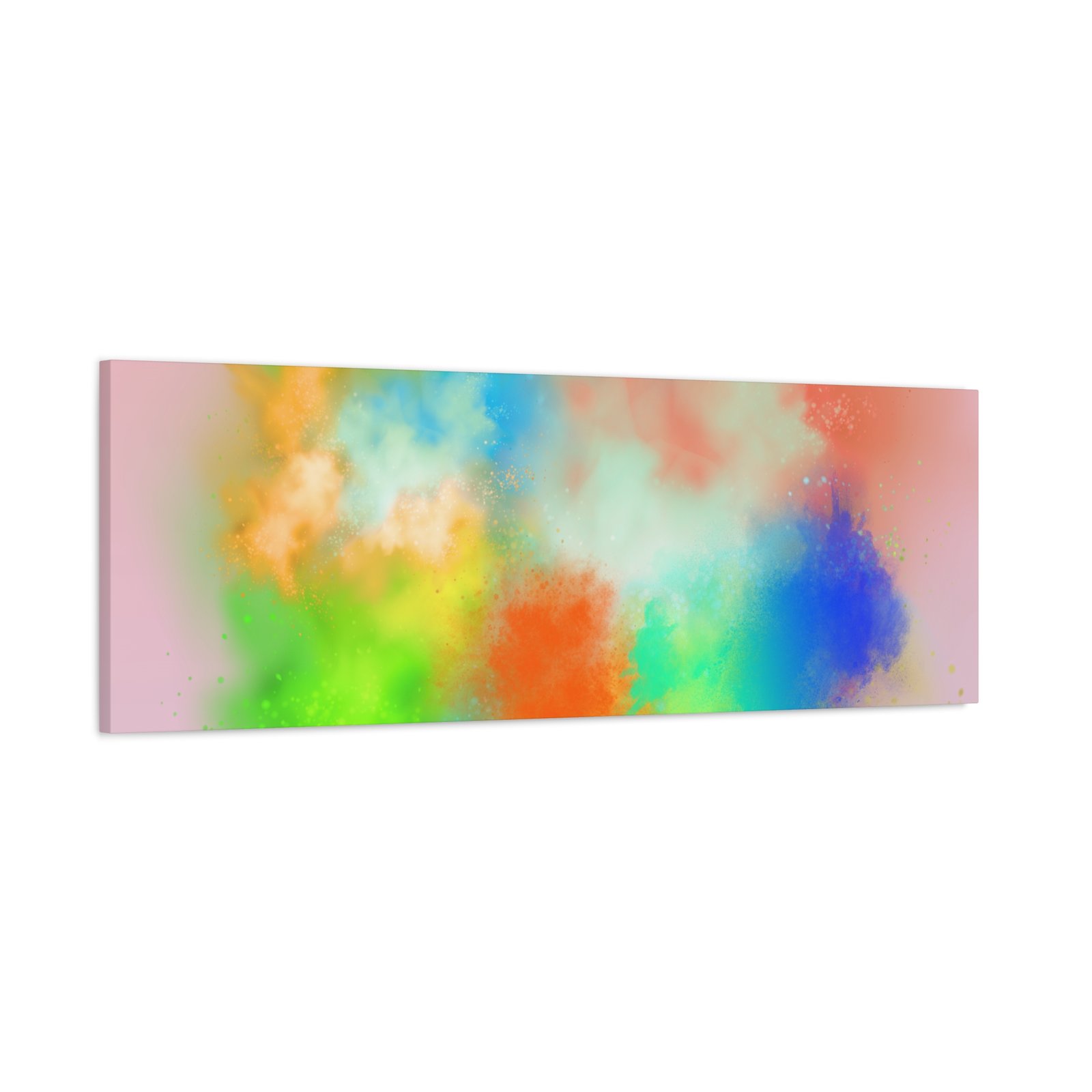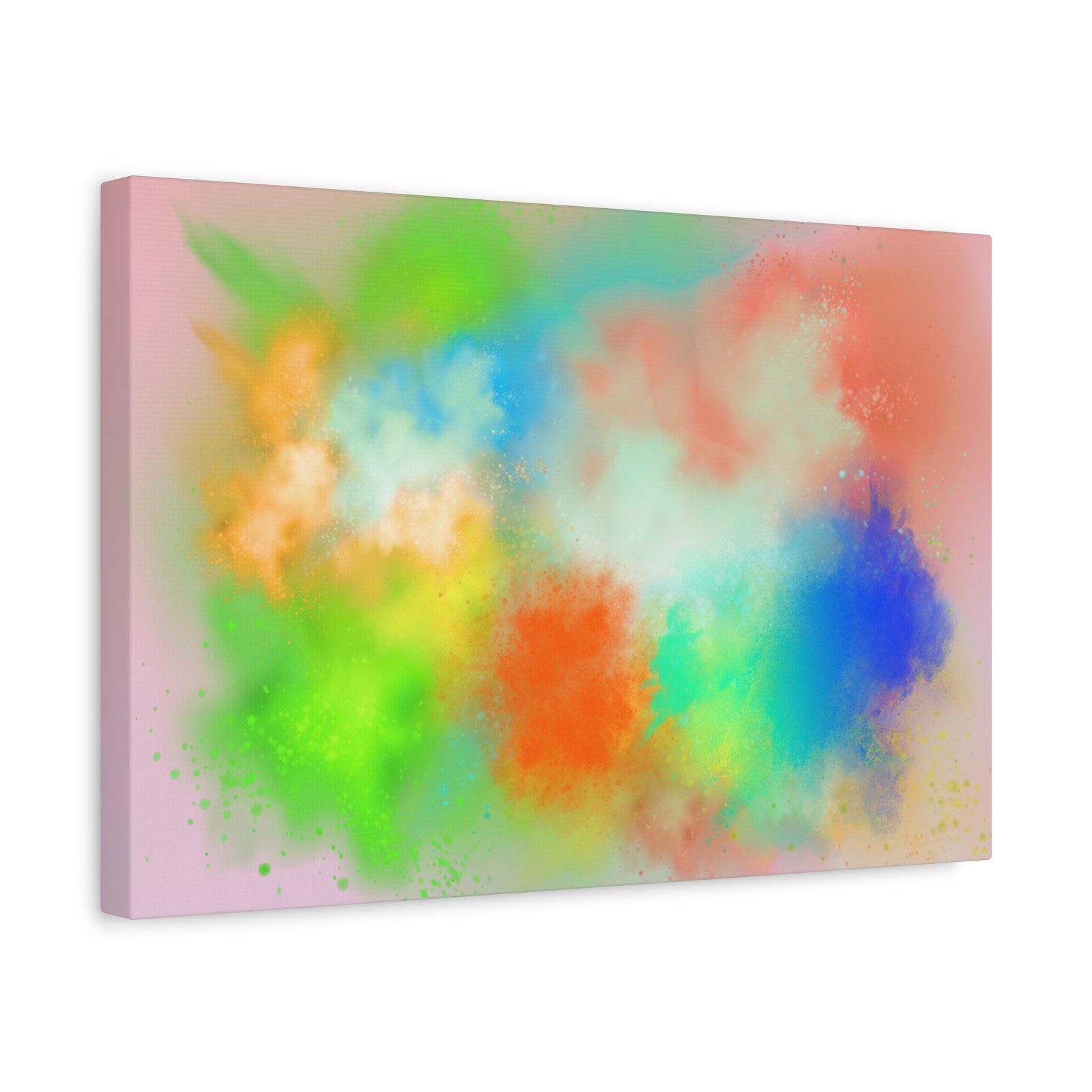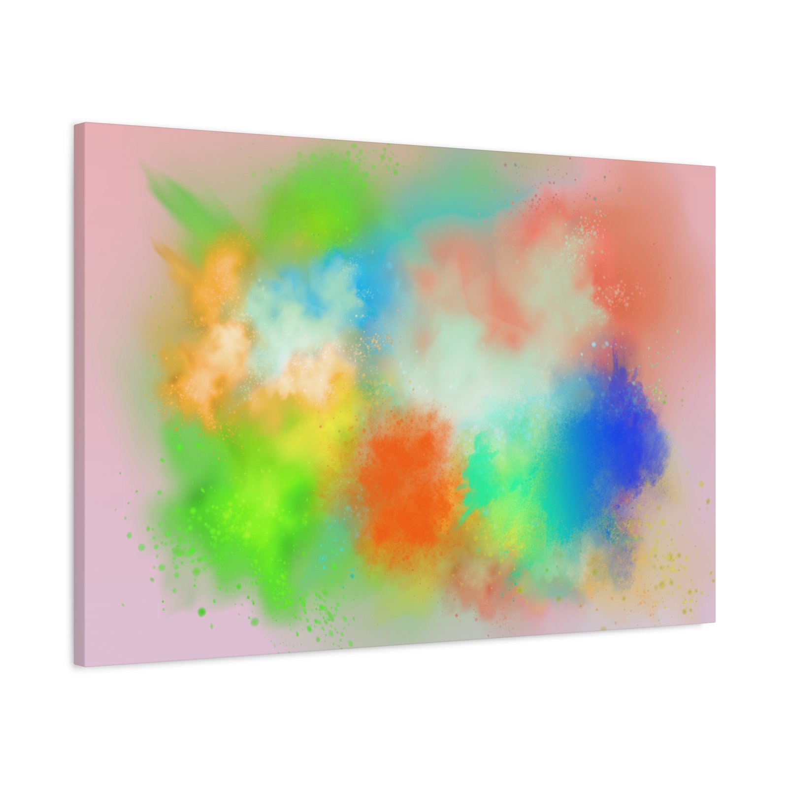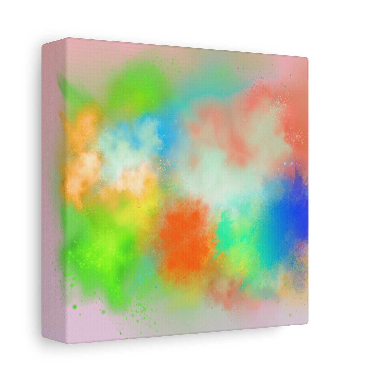 A vibrant stretched canvas that brings an airy splash of color into calm, modern spaces. Soft pink undertones cradle bursts of emerald, cobalt, coral and sunshine—like a painterly breath captured mid-motion. Lightweight yet sturdy, the matte finish mutes glare and highlights texture so the colors feel layered and alive on the wall. Hang it above a reading nook, over a minimalist mantel, or in a creative workspace to invite warmth and playful energy without overwhelming the room. The subtle depth from the wrapped edges and the secure back-hanging hardware keep it looking polished and effortless.